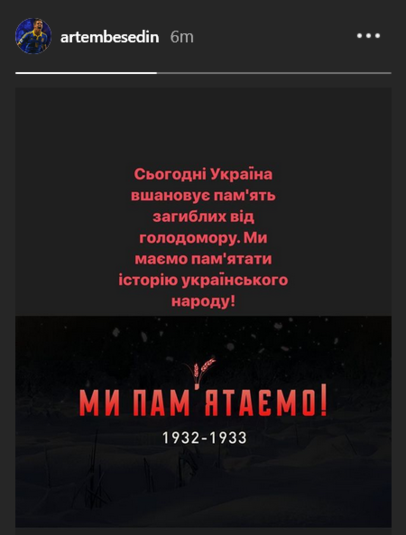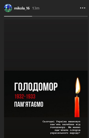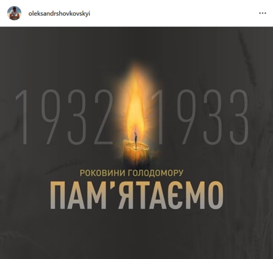 Пом’янули жертв Голодоморів і більшість українських футболістів «Динамо» – Артем Шабанов, Сергій Сидорчук, Віталій Миколенко, Георгій Бущан, Денис Попов, Денис Бойко, Артем Бесєдін і Денис Гармаш. Виставив скорботну картинку також легендарний динамівський воротар, а нині тренер національної збірної України Олександр Шовковський.