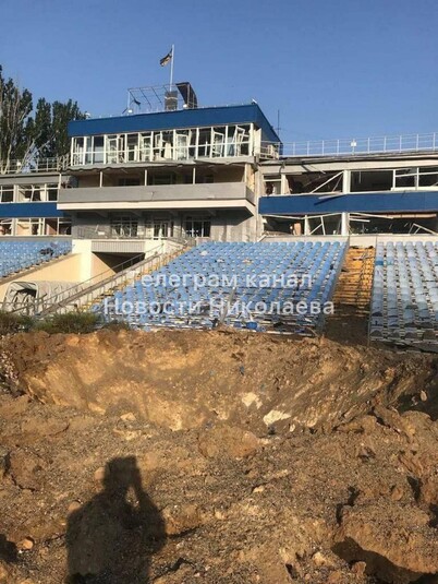 Сьогодні вранці російська ракета прилетіла по Центральному міському стадіону Миколаєва. Про це повідомляє Асоціація футболу Миколаївської області.