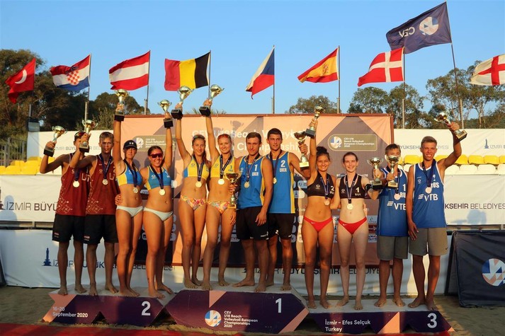Українські волейболісти зчинили справжній фурор на юніорському чемпіонаті Європи (спортсмени не старші 18-ти років) з пляжного волейболу в турецькому Ізмірі. Золоті нагороди українці здобули як серед хлопців, так і серед дівчат, при цьому в фіналі представниць прекрасної статі грало дві українських пари.