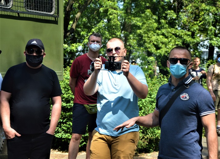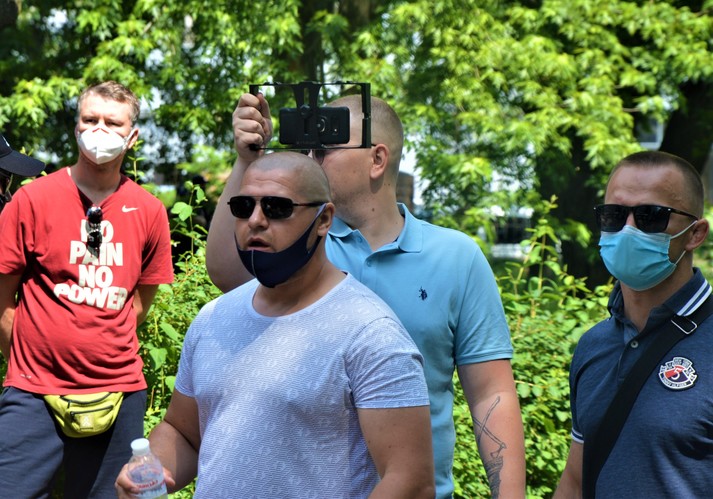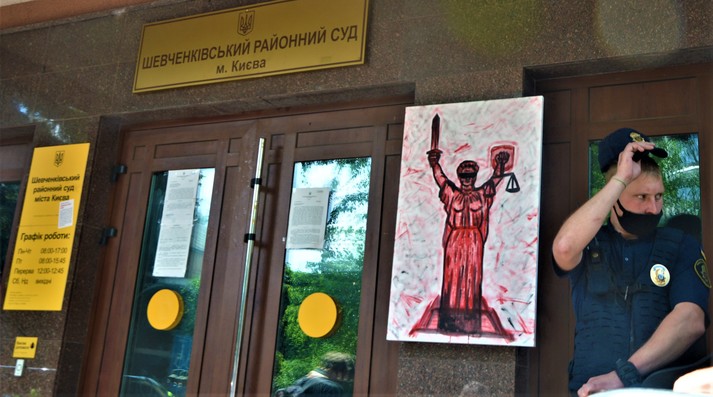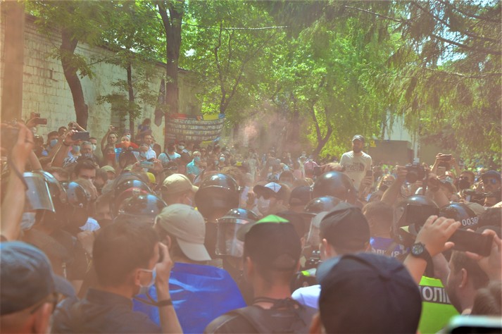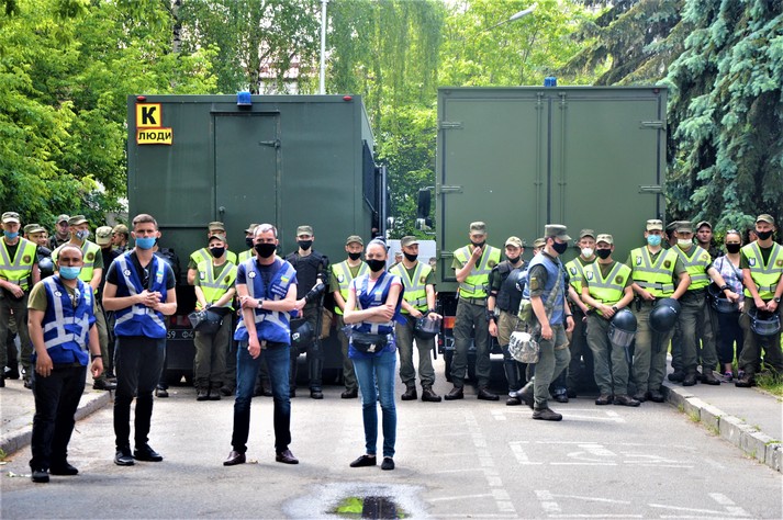 Сутички під будівлею суду почалися з самого ранку і їх спровокувала поява осіб, які назвали себе представниками ЗМІ Анатолія Шарія. Так званих стрімерів захищало близько десятка осіб спортивної статури. Спільними зусиллями активісти добилися, щоб цих громадян правоохоронці вивели за межі території, на якій відбувається акція протесту.