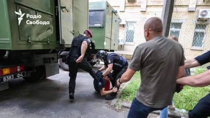 Працівники національної поліції почали затримувати людей під Шевченківським районним судом міста Києва, де сьогодні, 15 червня, з 10:00 ранку розглядається справа про обрання запобіжного засобу громадському активісту Сергієві Стерненку. Йому інкримінують перевищення засобів самозахисту і зумисне вбивство однієї з осіб, яка вчинила на нього напад під під’їздом власного будинку.