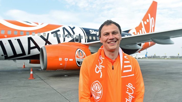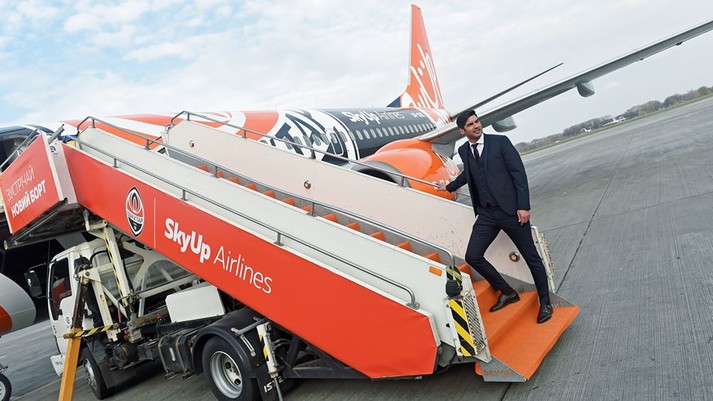 «Шахтар» презентував у аеропорту Бориспіль брендований літак у помаранчево-чорних кольорах клубу. Лайнер Boeing 737-700 NG надав «гірникам» їхній преміум-партнер авіакомпанія SkyUp Airlines.