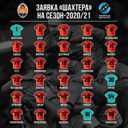 ФК «Шахтар» подав офіційну заявку футболістів для участі в турнірах сезону 2020/21 років.