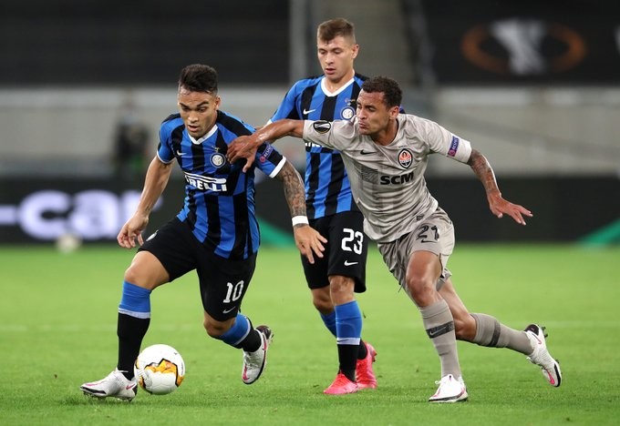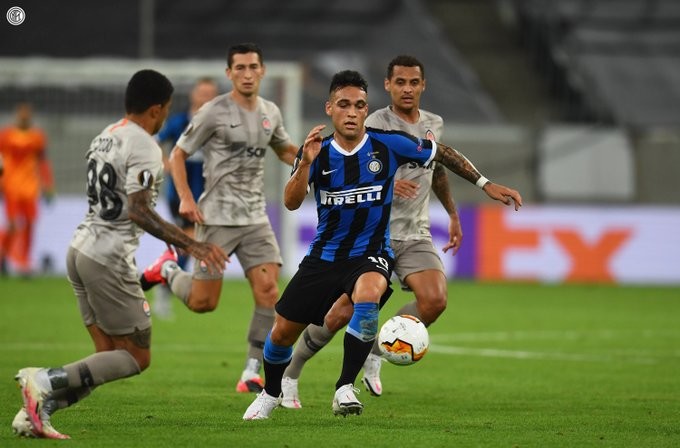 Початок матчу пройшов у розвідці та за низьких швидкостей. Після 15 хвилин підопічні Каштру 63 відсотки часу володіли м’ячем, проте на 19 хвилині обрізка від Андрія Пятова призвела до перехоплення ігрового снаряду від Барелли та його гольового навісу на Лаутаро Мартінеса. Аргентинець ударом головою відкрив лік своїм забитим голам у цьому розіграші Ліги Європи.