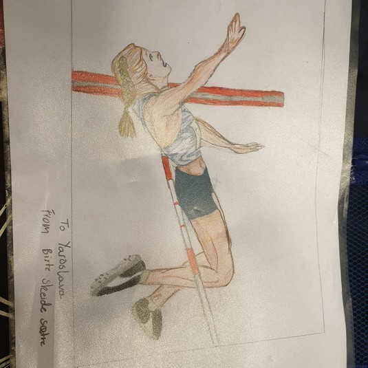 Школярка з Норвегії подарувала українській атлетці Ярославі Магучих малюнок з її зображенням (фото)