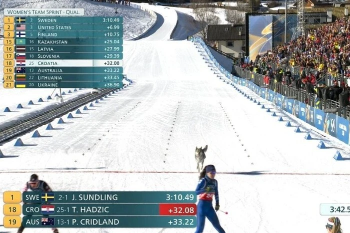 Собака вибіг на трасу під час кваліфікації командного жіночого спринту з лижних перегонів на Олімпійських іграх 2026 року. Про це повідомляє «Главком».