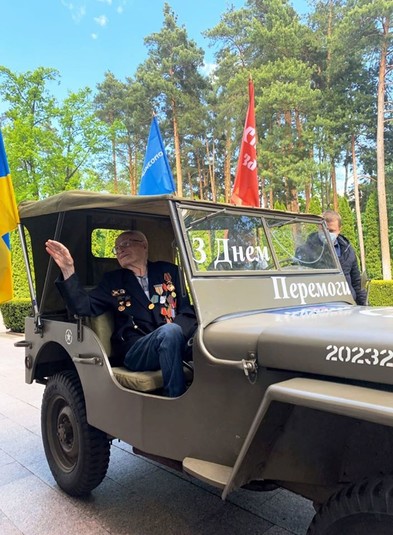 Ветерана провезли у стилізованому під військовий «бобику» і подарували торт із забороненою в Україні символікою.