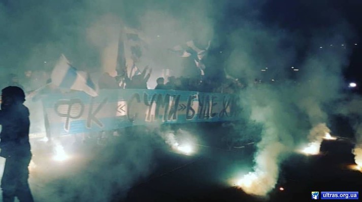 Фанати несли текстовик «ФК «Суми» має жити» і палили фаєри.