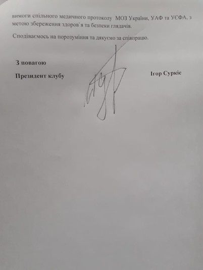Суркіс просить Кличка допустити глядачів на Лігу чемпіонів. Але не на чемпіонат України (документ)