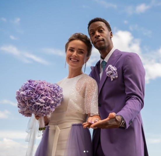 Еліна Світоліна і Гаель Монфіс відгуляли весілля. Урочистості вони влаштували в Швейцарії, неподалік від Женеви. Перші фото оприлюднив брат тенісистки. Наречена була в брючному костюмі і вся в діамантах.