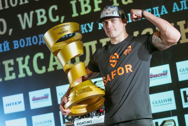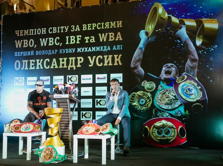 Український боксер Олександр Усик, абсолютний чемпіон світу і перший володар кубка Мохаммеда Алі, провів першу прес-конференцію в Україні після завоювання престижного титулу. Телеканал «Інтер» покаже її в неділю, 5 серпня, о 12:00.