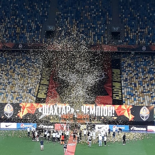 «Шахтар» турнірної мотивації не мав, хоча й грав основним складом. А після фінального свистка чемпіони влаштували собі свято. Дарма, що трибуни «Олімпійського» були порожні і раділи тріумфатори хіба на камери телеканалу-транслятора, яким володіє власник «Шахтаря» Ахметов.