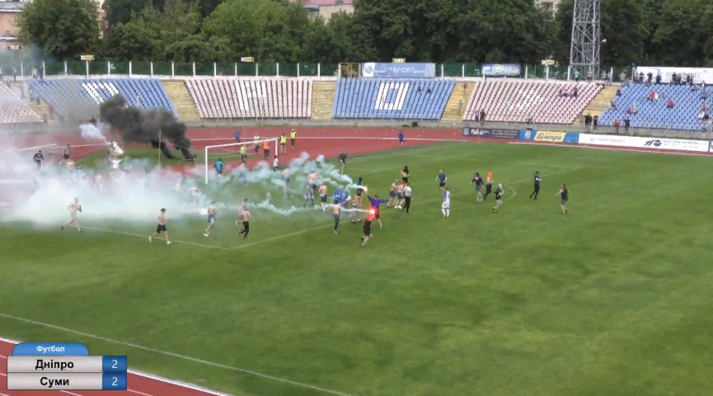 Матч заключного туру Першої ліги України з футболу між «Черкаським Дніпром» і «Сумами» був перерваний на 54-й хвилині.