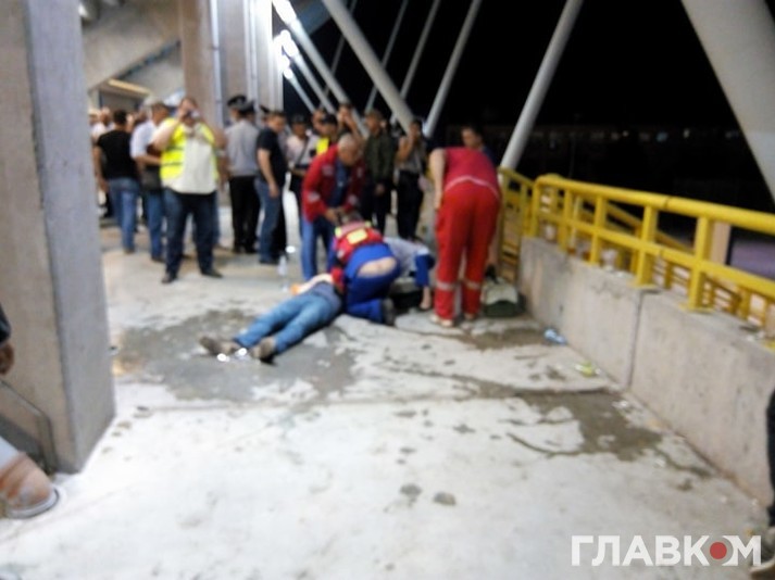 Очевидці зазначають, що потерпілому фанату лікарі надають допомогу. Пізніше його забрала швидка допомога.