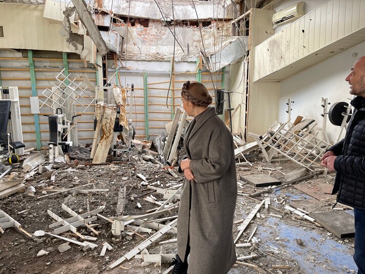«Сьогодні фасад і дах вуличної споруди зяють дірками від російських бомб та снарядів, зали порожні, немає води», – написала Тимошенко.
