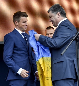 У святковій церемонії, яка пройшла на Михайлівській площі взяли участь гравці і тренери національної команди країни, президент України Петро Порошенко, президент Федерації футболу України Андрій Павелко, віце-президент УЄФА Григорій Суркіс, посли національної команди на Євро-2016 та сотні вболівальників.