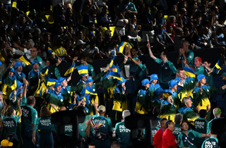 Парад спортсменів з 168 делегацій розпочався з нижньої частини Єлисейських полів у святковій атмосфері з волонтерами, які підбадьорювали та танцювали.