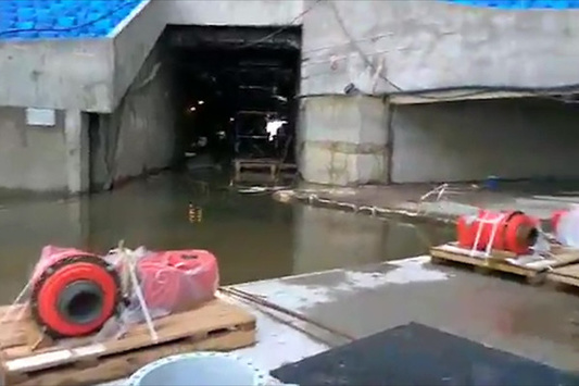 На нульовій позначці стадіону «Зеніт-Арена», що будується на Крестовському острові Санкт-Петербурга, розтеклася вода. За словами очевидців, для вирішення проблеми були задіяні кілька відкачувальних машин «Водоканалу».