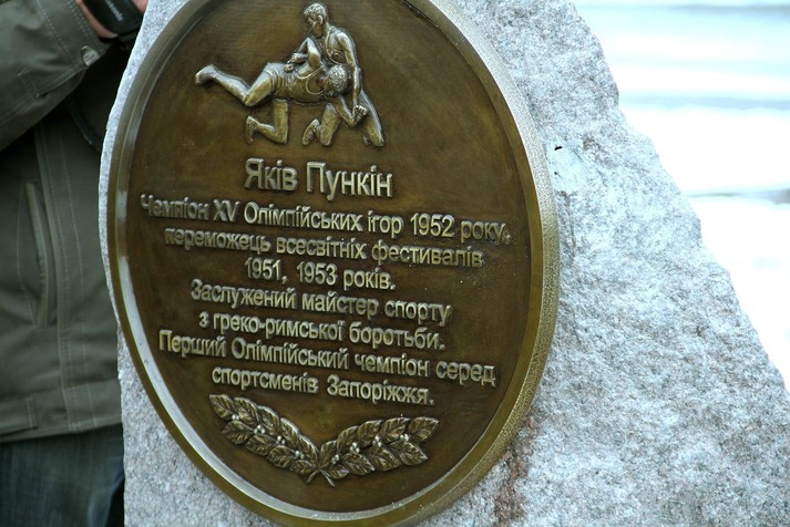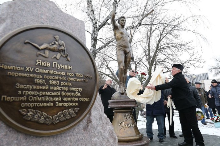 У Запоріжжі відкрили пам'ятник чемпіону XV Олімпійських ігор з греко-римської боротьби Якову Пункіну – першому українському спортсмену, який став олімпійським чемпіоном.