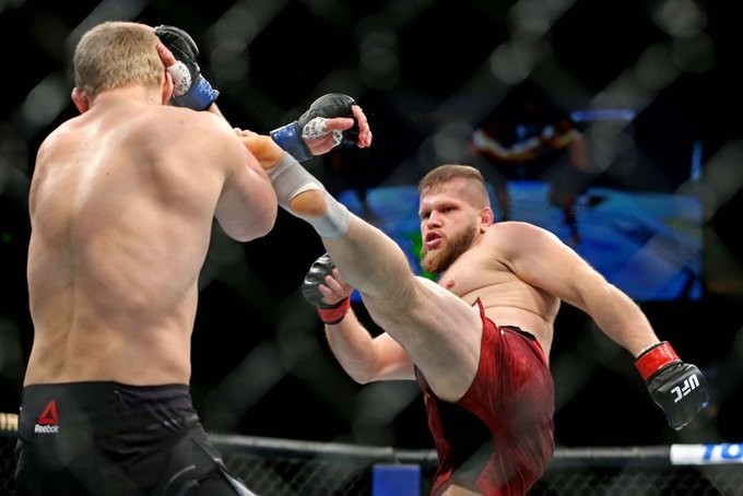 У андеркарді вийшов в октагон нині приписаний до Молдови український боєць Сергій Співак з романтичним прізвиськом «Полярний ведмідь».