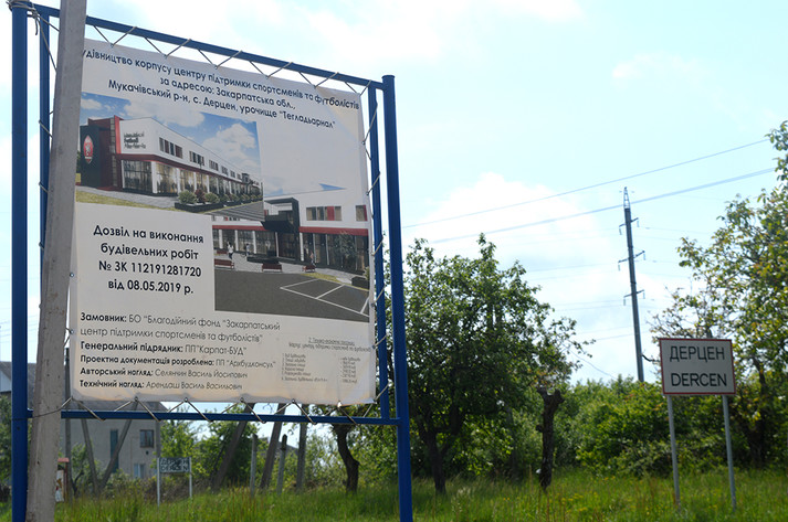 Велике будівництво триває при в’їзді в село Дерцен. Вантажівки, крани, екскаватори, мінітехніка - піковий період тут працювало до 130 робітників, розповідає офіційний сайт Федерації футболу Закарпатської області. Одні займаються закладанням дренажної та поливної систем для майбутнього газону, інші встановлюють протипожежні резервуари, ще інші оздоблюють фасад приміщення, хтось проводить електропровіддя, кладе лінолеум, прибирає сміття, заносить меблі.
