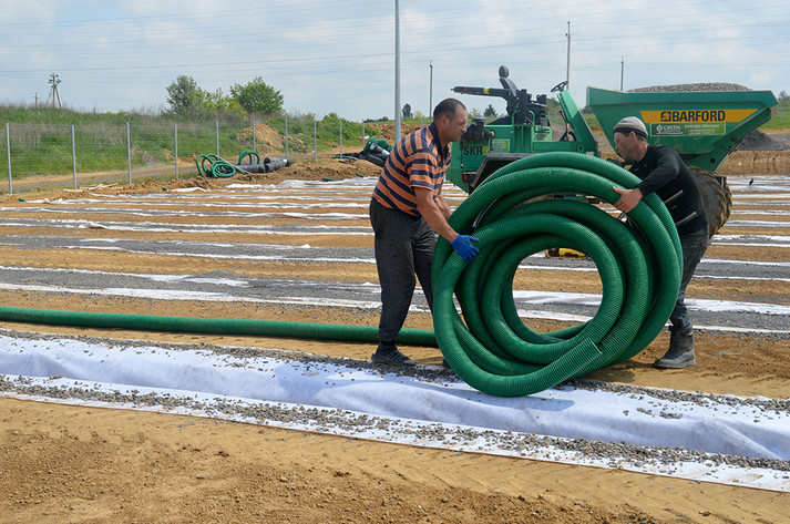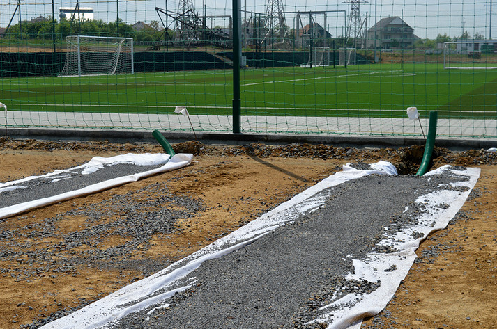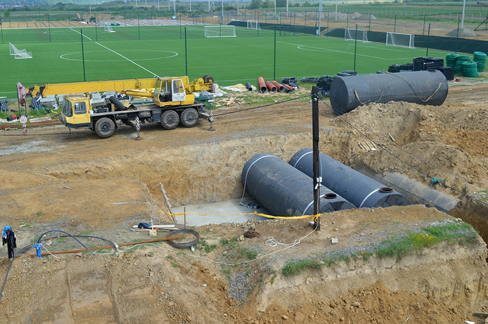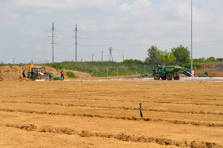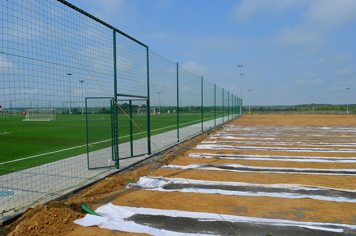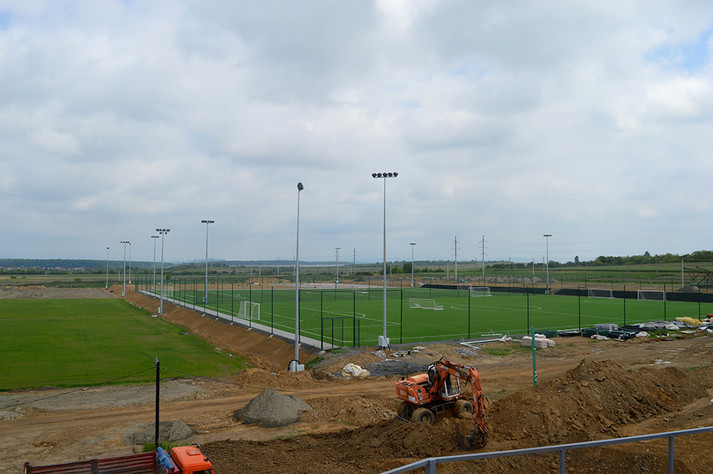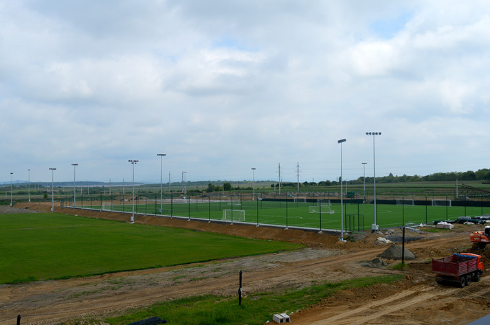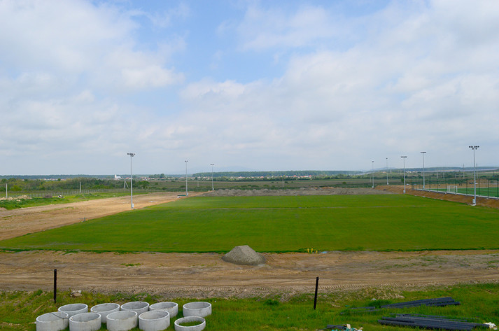 Уже здано в експлуатацію два стандартні поля із синтетичним покриттям. Ще чотири планують із природним газоном. Один із них застелять невдовзі рулонною травою. Це пришвидшить можливість гравцям займатися на полі. Поруч обладнано якісне освітлення. Паралельно облаштовують територію, паркування, дорогу. Будуть встановлені трибуни.