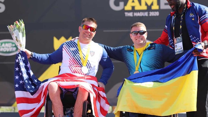 Наша збірна здобула у Гаазі ще три нагороди. Наші лучники вкотре довели, що вони серед найкращих. Дмитро Афанасьєв, Василь Стуженко та Сергій Калитюк вибороли у фіналі для України срібний комплект нагород. У 2020-му вони були срібними медалістами Invictus Games The Hague.