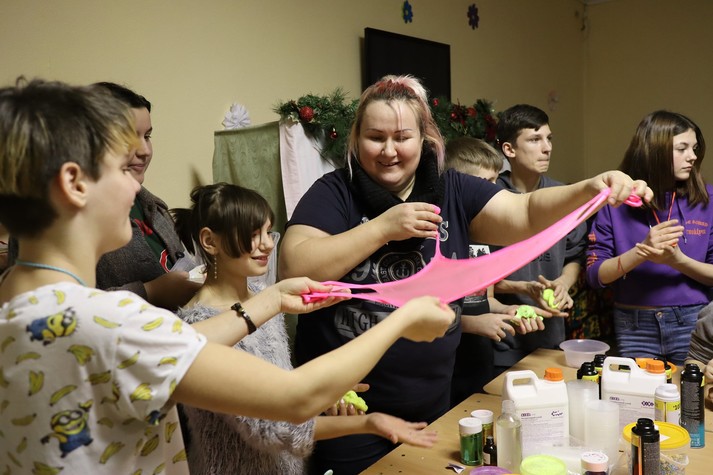 Під час зустрічі спершу був проведений яскравий майстер-клас з виготовлення слаймів, під час якого кожен міг собі зробити індивідуальну іграшку.