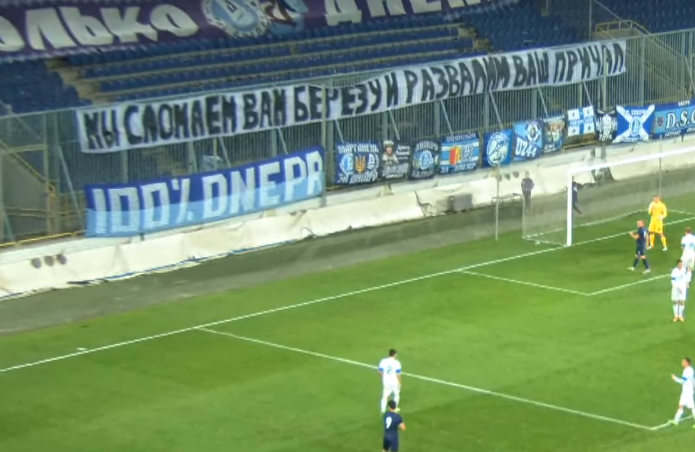 Фанати «Дніпра» також вивісили на матчі банер: «Ми зламаємо вам Березу і розвалимо ваш «Причал» (неофіційний сайт уболівальників дніпровського клубу - прим.).