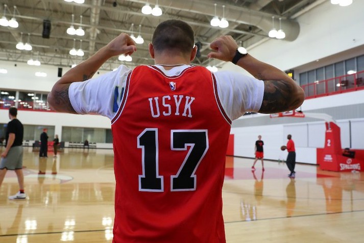Колишній абсолютний чемпіон світу з боксу в важкій вагові категорії Олександр Усик відвідав тренування команди НБА «Чикаго Буллз».