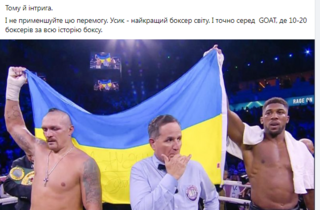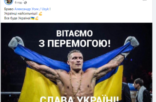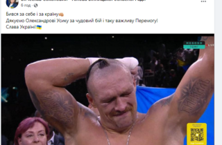 «Дякуємо, Олександр Усик! Україна перемагає і буде перемагати!!! Слава Україні!!», – лаконічно відреагував радник керівника Обласної військової адміністрації Олександр Скічко.