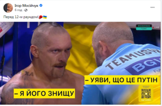 «Важка, але така важлива і потрібна перемога Олександра Усика! Захист титулу чемпіона світу – символ того, що всі, хто козацького роду, свого не віддадуть, будуть битися за це і неодмінно переможуть!», – відреагував на перемогу Олександра Усика президент України Володимир Зеленський.