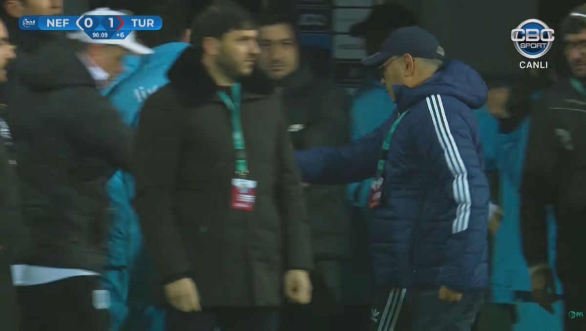 Головний тренер бакинського «Нефтчі» Юрій Вернидуб привітав керманича товузького «Турана» Курбана Бєрдиєва з перемогою рукостисканням. Про це повідомляє «Главком» із посиланням на AzPFL.