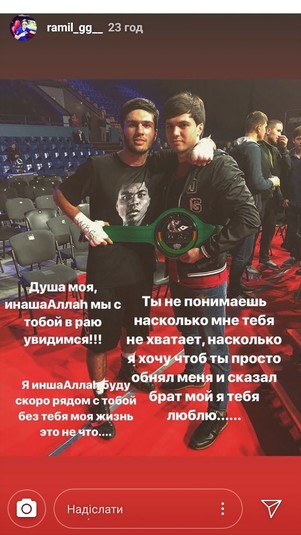 Професійний український боксер Раміль Ґаджієв зворушливо вшанував пам'ять свого старшого брата Шаміля, який в ніч на 24 березня в Одесі розбився в резонансному ДТП під час нічних вуличних перегонів разом зі своєю подругою Вікторією Кравченко.