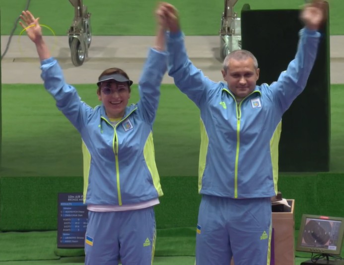 Українська команда виграла третю медаль Олімпіади. У кульовій стрільбі Фортуна посміхнулася Олені Костевич і Олегу Омельчуку. У змішаних змаганнях з пневматичного пістолета з 10 метрів вони фінішували на третьому місці.
