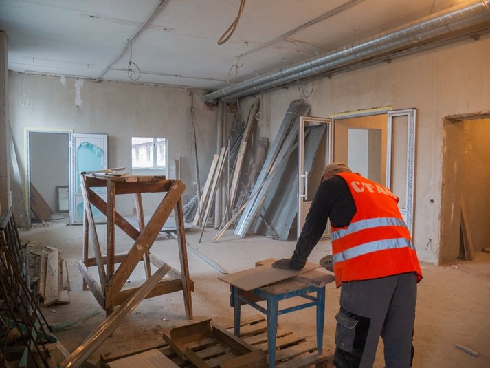 У спорткомплексі облаштують приміщення під боксерський ринг, тренажерний зал, а також буде зал для тенісу, бадмінтону, міні-футболу та індорхокею. Власне, процес реконструкції онлайн – й показано на світлинах.