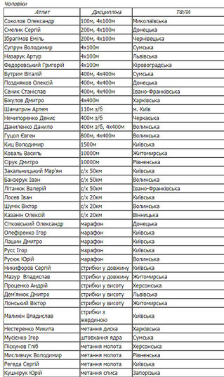 До системи ARENA може бути внесено максимум по шість учасників/учасниць у кожній з естафет. Саме тому «4х100м» і «4х400м» не стоїть навпроти прізвищ деяких з атлетів, які претендують на участь в естафетах.