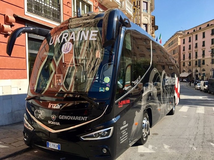 Провівши на борту менш як дві з половиною години, збірна України прибула до Генуї.