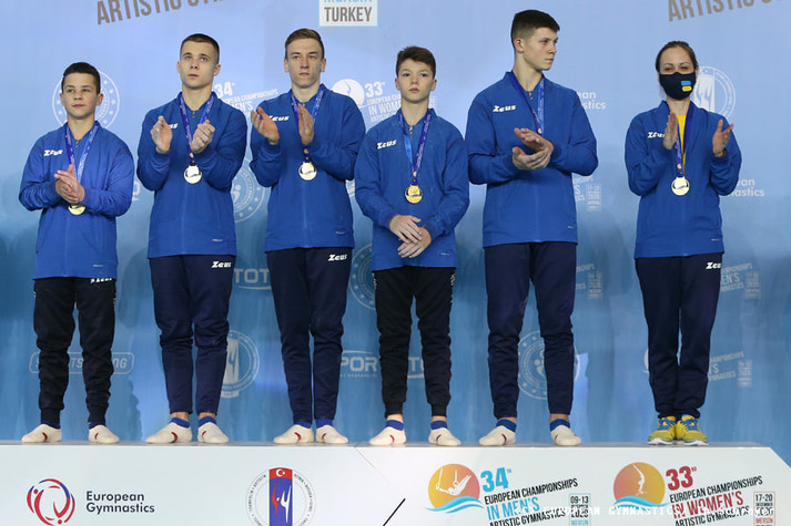 Європейське золото для України здобули Ілля Ковтун, Володимир Костюк, Радомир Стельмах, Іван Севрук та Микита Мельников під керівництвом тренерів Геннадія Сартинського та Ірини Надюк.