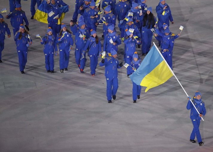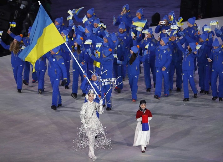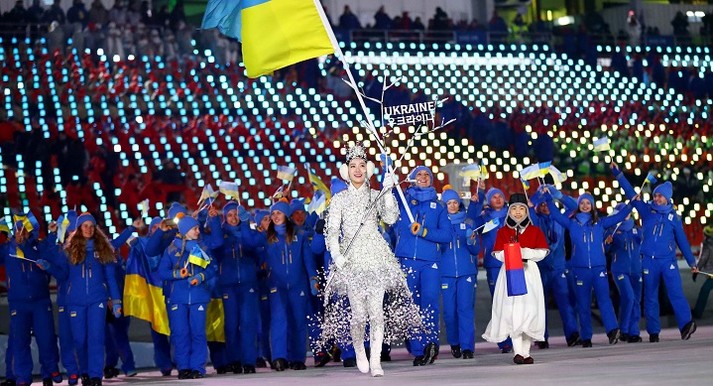 На параді команд-учасниць олімпійська збірна України згідно літерам корейської абетки крокувала 57-ю.