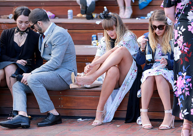 Дами, які з'явилися на перегонах в традиційних елегантних сукнях і капелюшках, намагалися не поступатися джентльменам ні в чому