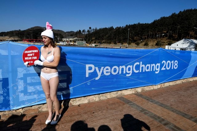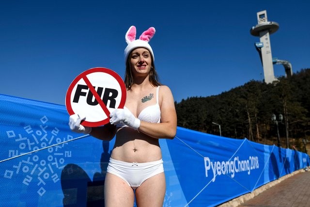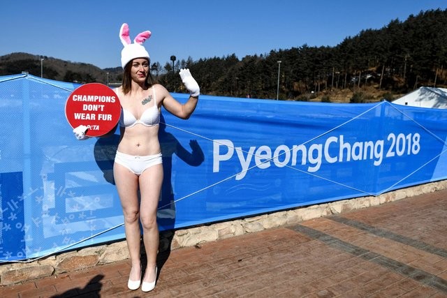 Активістка організації РЕТА (Люди за етичне поводження з тваринами) влаштувала акцію протесту в олімпійському Пхьончхані.