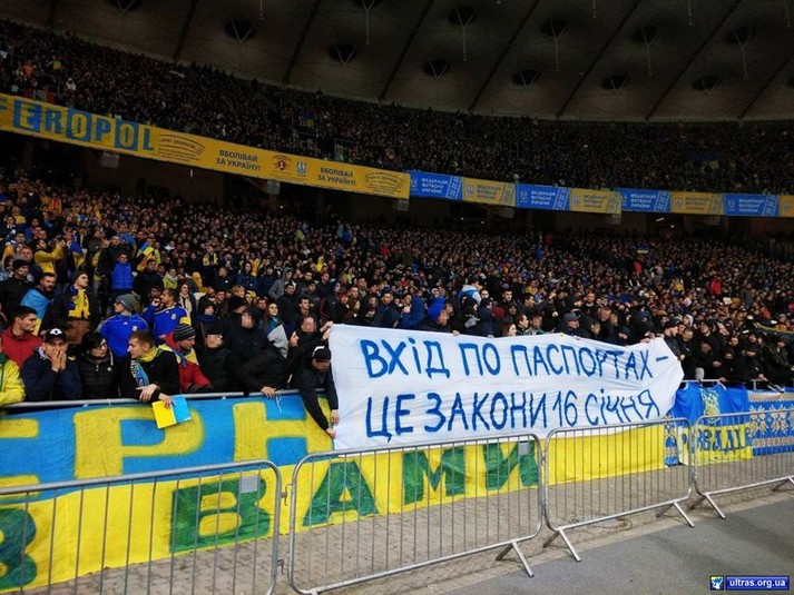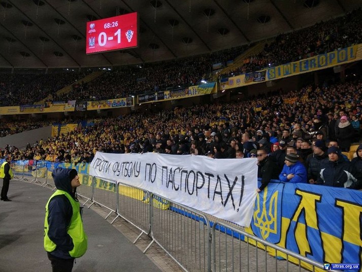 Зокрема, були банери з написами «Проти футболу по паспортах», «Вхід по паспортах – це закони 16 січня», «Ні – диктатурі ФФУ».