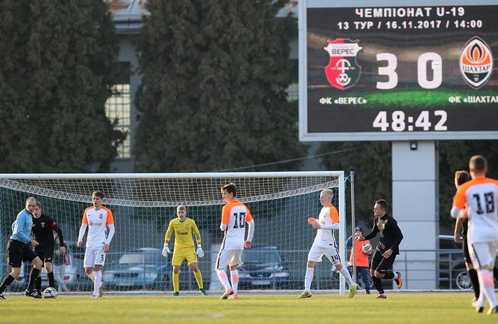 У 13-му турі юнацького чемпіонату України U-19 у четвер, 16 листопада, донецький «Шахтар» у Львові на стадіоні «СКІФ» зустрічався з «Вересом»