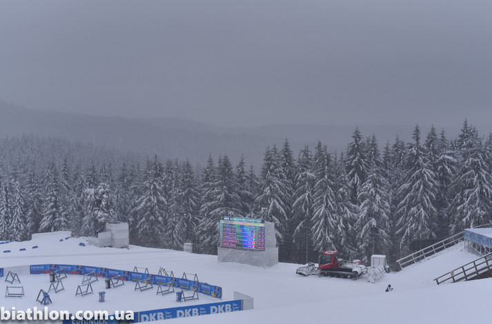 На жаль, сьогоднішній день не став таким винятком. Як передає biathlon.com.ua, за дві години до старту чоловічого спринту над стадіоном повис туман, до якого незабаром додався серйозний вітер і сніг.