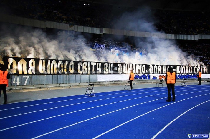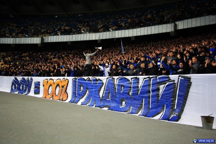 «На цю гру ультрас «Динамо» замість лицьовика вивісили напис «ФФУ = 100% іржавий!», натякаючи на упередженість Федерації по відношенню до деяких клубів, та одночасно згадуючи перформанс минулого сезону «100% білий», за який кияни були покарані грою без глядачів.