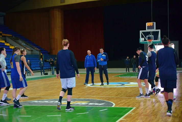 Спочатку годинне заняття провели господарки паркету. Перші 15 хвилин були відкритими для представників ЗМІ, інформує офіційний сайт Федерації баскетболу України.