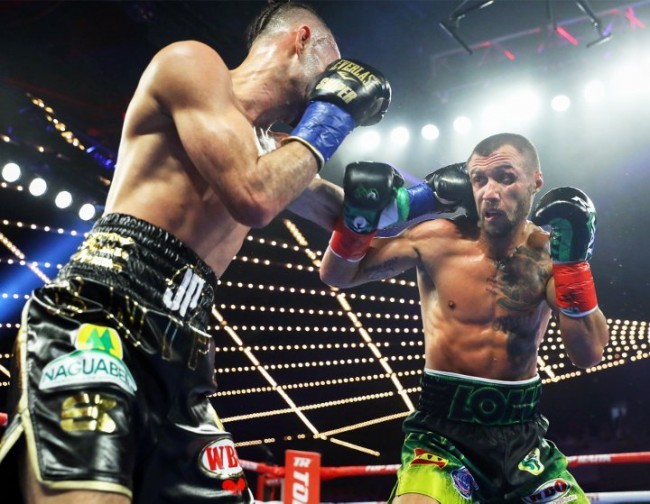 Василь Ломаченко (12-1, 9 КО) об'єднав титули чемпіона світу за версіями WBA і WBO у легкій вазі (до 61,2 кг).