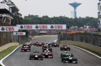 Последняя гонка сезона стартовала при облачной, но сухой погоде. На старте Росберг обошел Феттеля, а на третье место прорвался Хэмилтон, опередивший Алонсо и Уэббера. Однако в конце первого круга Феттель вернул себе лидерство, а Алонсо вернул себе позицию по отношению к Хэмилтону. Первый круг гонщики закончили в следующем порядке: Феттель, Росберг, Алонсо, Хэмилтон, Уэббер, Масса, Хюлькенберг, Грожан, Риккьярдо, Боттас.