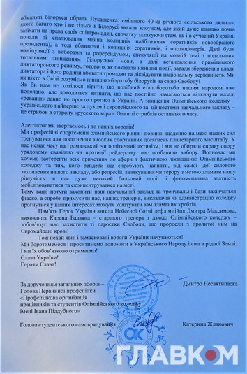 Раніше представники Олімпійського коледжу мали змогу висловити свою позиції на комісії Київради з питань освіти, молоді і спорту. «Ми надали депутатам рішення загальних зборів про оголошення страйку (див. нижче), – каже голова студентського комітету Катерина Жданович. – Власне, зараз ніхто з нас на пари не ходить. Вислухавши нас, комісія Київради проголосувала на нашу підтримку. Проти не було жодного з присутніх. Хоча попередньо присутні були налаштовані проти нас».